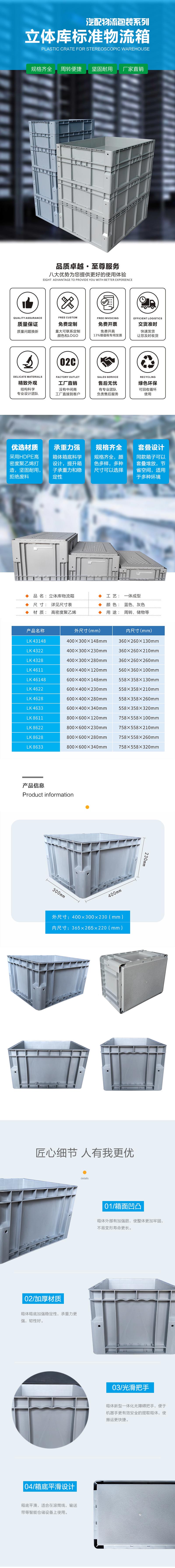立库专用箱箱LK4322 外尺寸:400*300*230mm 内规格尺寸:365*265*220mm 质材:精选集PP料