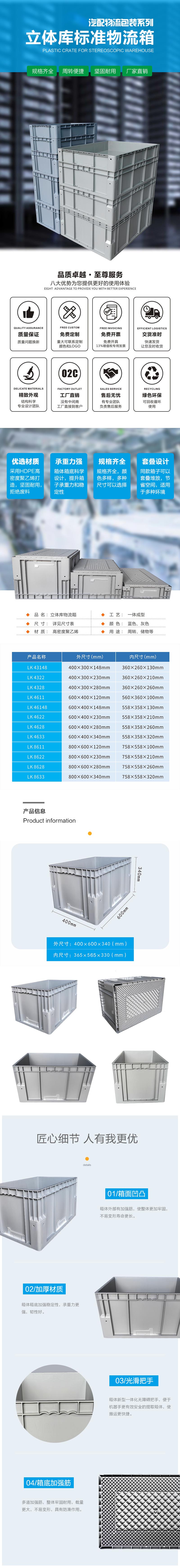 立库常用箱LK4633 外大小:600*400*340mm 内尺码:565*365*330mm 面料:经典PP料